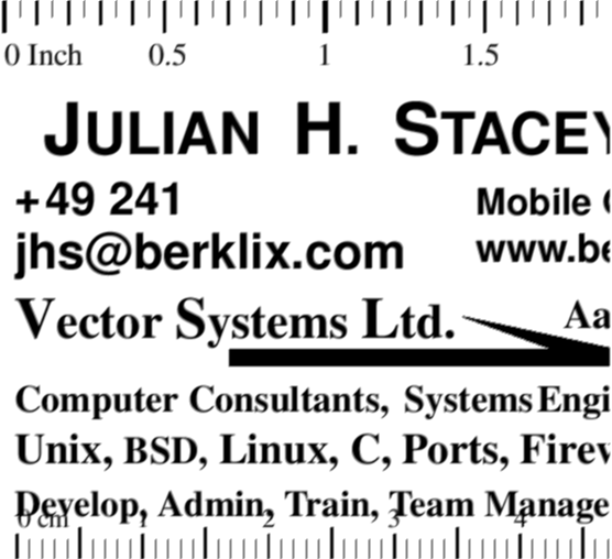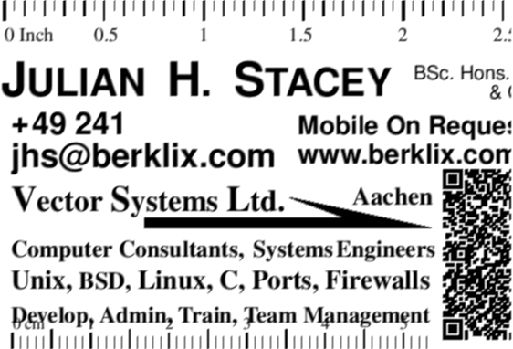 If you need a geographically local BSD or Unix consultant, somewhere I & VSL can not supply, try the World Wide BSD Consultants Index   Falls Sie einem BSD oder Unix-Consultant vor Ort brauchen, und und ich & VSL können das nicht übernehmen, probieren Sie World Wide BSD Consultants Index